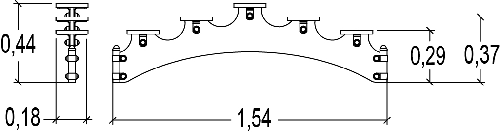 Rozmery modulu sú: 1,54 m dĺžka, šírka 0,18 m, výška 0,44 m. Výška voľného pádu (HCL) je 0,45 metrov.