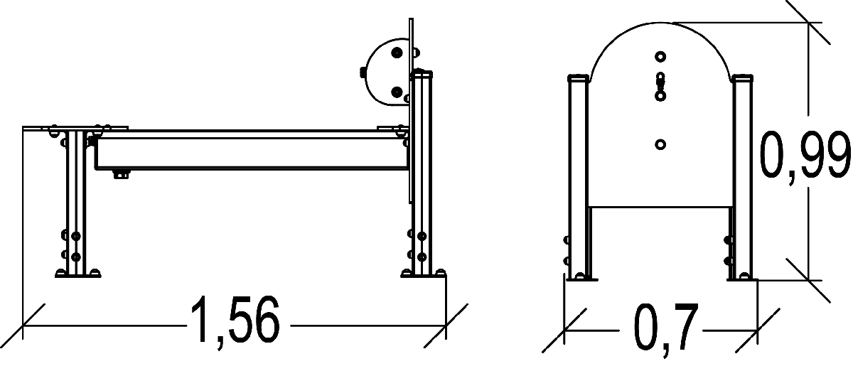 Rozmery modulu sú: 1,56 m dĺžka, šírka 0,70 m, výška 0,99 m.