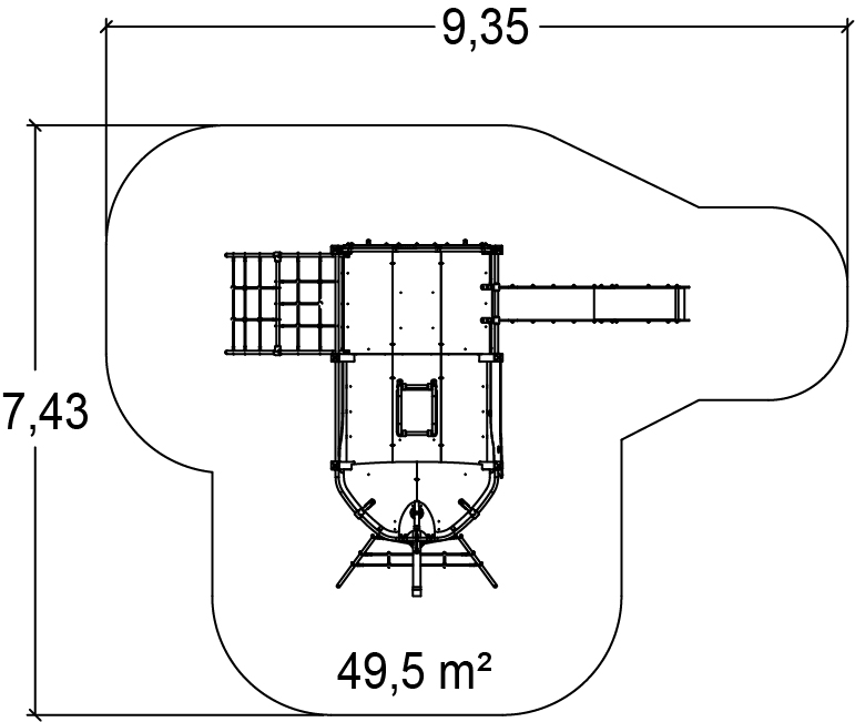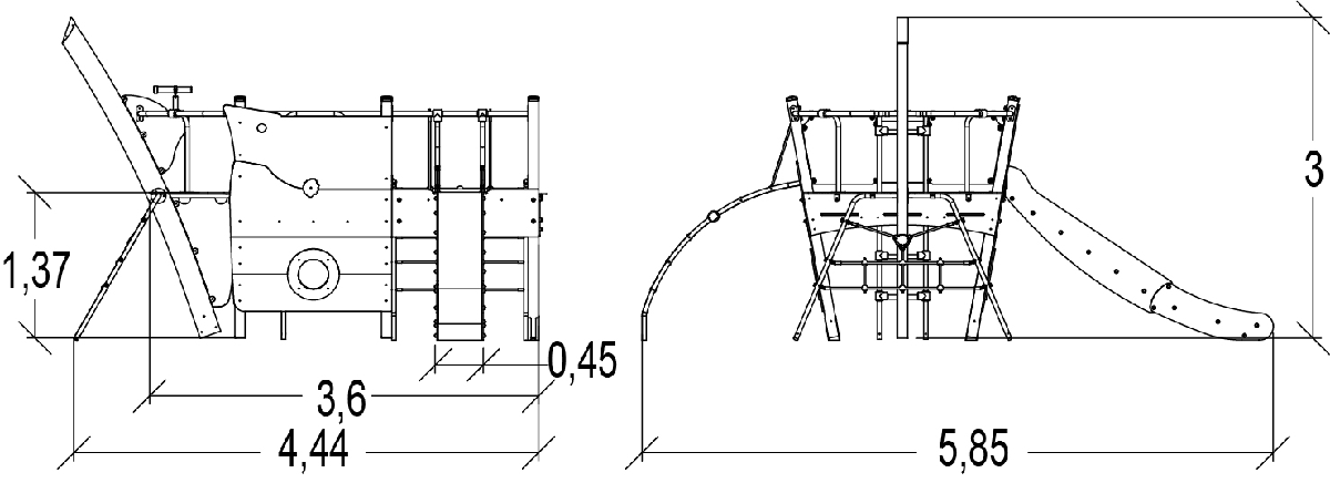 Rozmery modulu sú: 4,44 m dĺžka, šírka 5,86 m, výška 3,00 m. Výška voľného pádu (HCL) je 1,37 metrov.