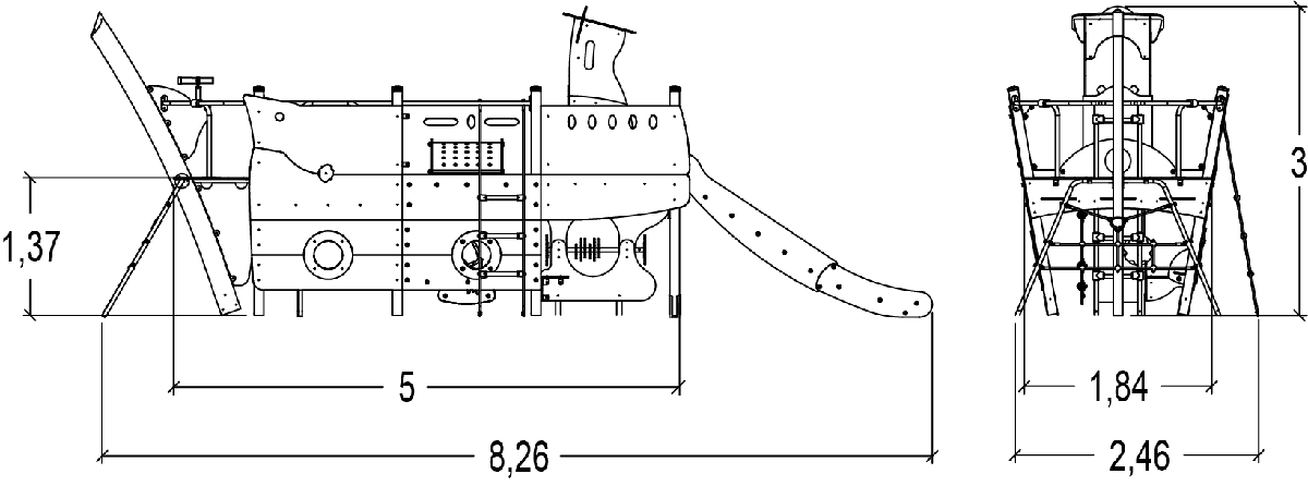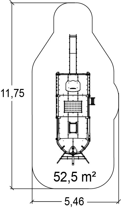 Rozmery modulu sú: 8,26 m dĺžka, šírka 2,46 m, výška 3,00 m. Výška voľného pádu (HCL) je 1,37 metrov.