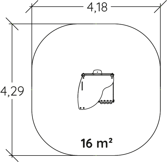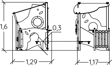 Rozmery modulu sú: 1,29 m dĺžka, šírka 1,17 m, výška 1,60 m. Výška voľného pádu (HCL) je 0,60 metrov.