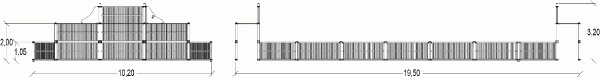Rozmery modulu sú: 19,50 m dĺžka, šírka 10,20 m, výška 3,20 m.