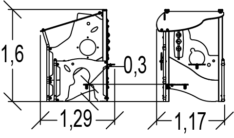 Rozmery modulu sú: 1,29 m dĺžka, šírka 1,17 m, výška 1,60 m. Výška voľného pádu (HCL) je 0,60 metrov.