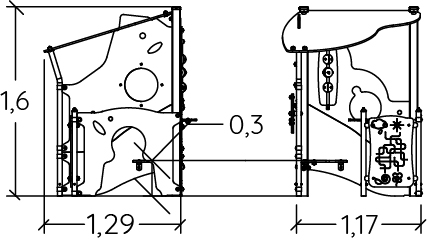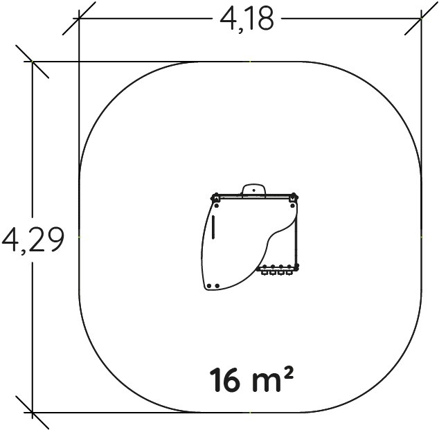 Rozmery modulu sú: 1,29 m dĺžka, šírka 1,17 m, výška 1,60 m. Výška voľného pádu (HCL) je 0,60 metrov.