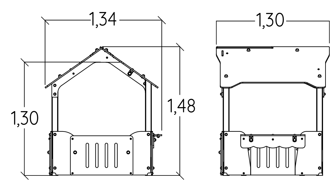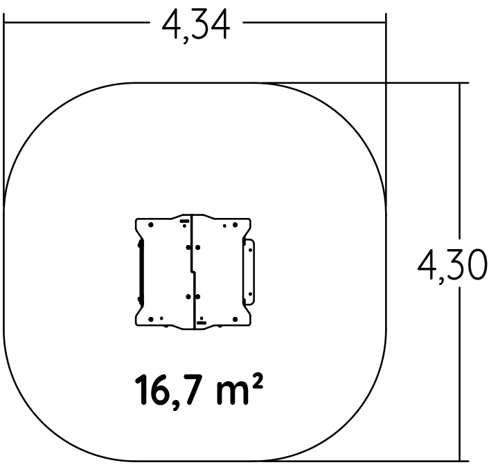 Rozmery modulu sú: 1,34 m dĺžka, šírka 1,30 m, výška 1,48 m. Výška voľného pádu (HCL) je 0,60 metrov.