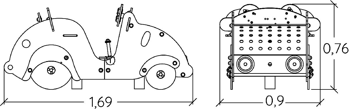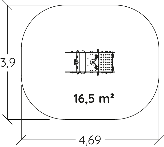 Rozmery modulu sú: 1,69 m dĺžka, šírka 0,90 m, výška 0,75 m. Výška voľného pádu (HCL) je 0,50 metrov.
