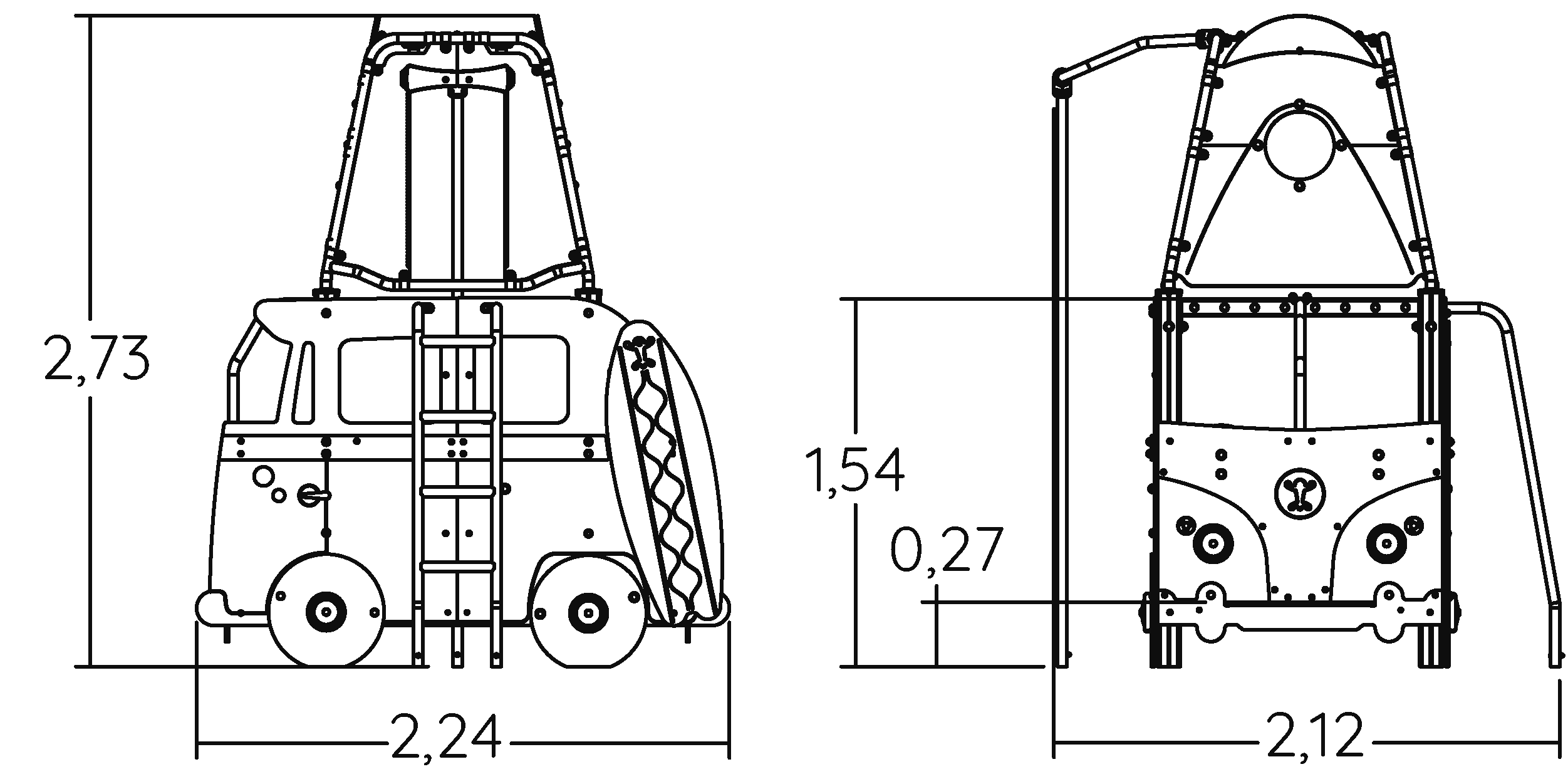 Rozmery modulu sú: 2,24 m dĺžka, šírka 2,11 m, výška 2,74 m. Výška voľného pádu (HCL) je 1,64 metrov.