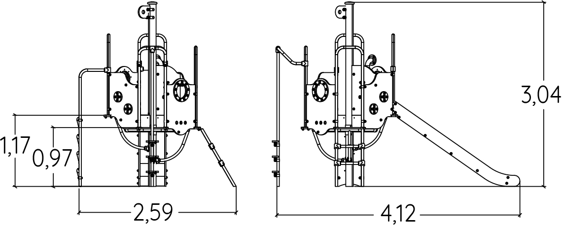 Rozmery modulu sú: 4,12 m dĺžka, šírka 2,60 m, výška 3,02 m. Výška voľného pádu (HCL) je 1,30 metrov.