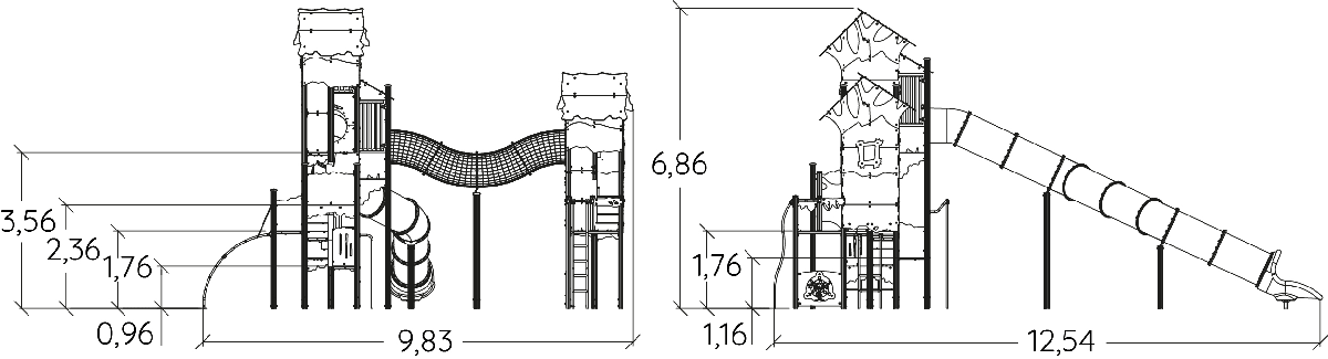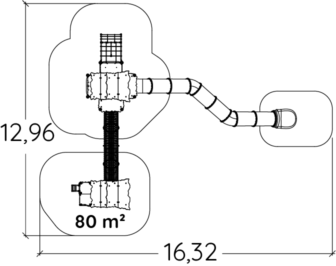 Rozmery modulu sú: 12,54 m dĺžka, šírka 9,83 m, výška 6,86 m. Výška voľného pádu (HCL) je 2,37 metrov.