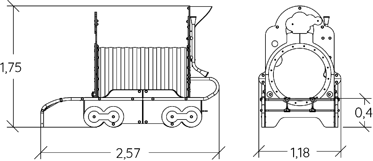 Rozmery modulu sú: 2,46 m dĺžka, šírka 1,18 m, výška 1,75 m. Výška voľného pádu (HCL) je 0,60 metrov.
