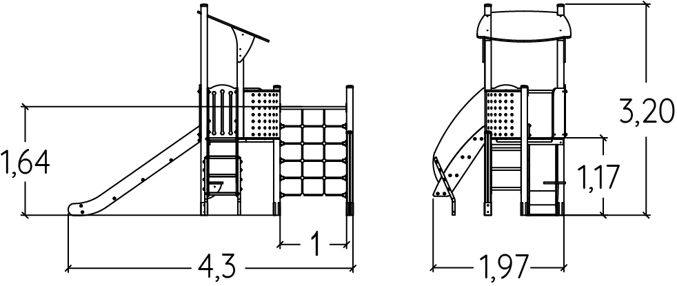 Rozmery modulu sú: 4,30 m dĺžka, šírka 1,97 m, výška 3,20 m. Výška voľného pádu (HCL) je 1,70 metrov.