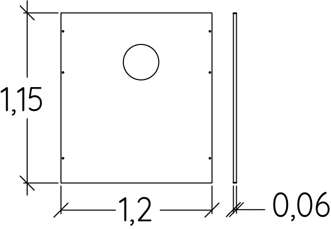 Rozmery modulu sú: 1,15 m dĺžka, šírka 0,06 m, výška 1,20 m.