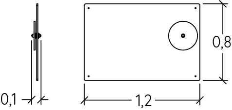 Rozmery modulu sú: 1,20 m dĺžka, šírka 0,10 m, výška 0,80 m.