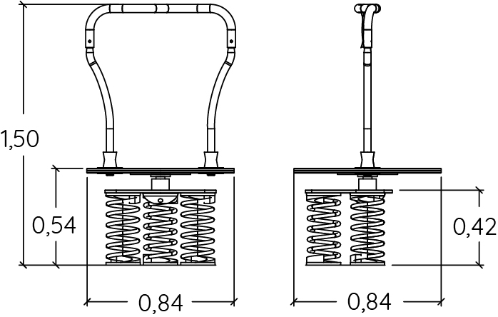 Rozmery modulu sú: 0,84 m dĺžka, šírka 0,84 m, výška 1,50 m. Výška voľného pádu (HCL) je 0,55 metrov.