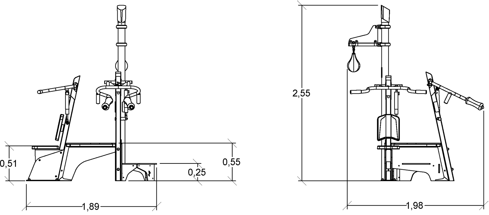 Rozmery modulu sú: 2,04 m dĺžka, šírka 1,89 m, výška 2,55 m. Výška voľného pádu (HCL) je 0,60 metrov.
