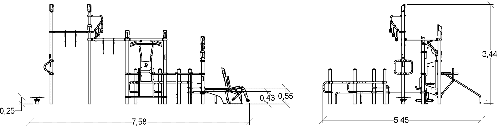 Rozmery modulu sú: 7,58 m dĺžka, šírka 5,45 m, výška 3,45 m. Výška voľného pádu (HCL) je 1,50 metrov.