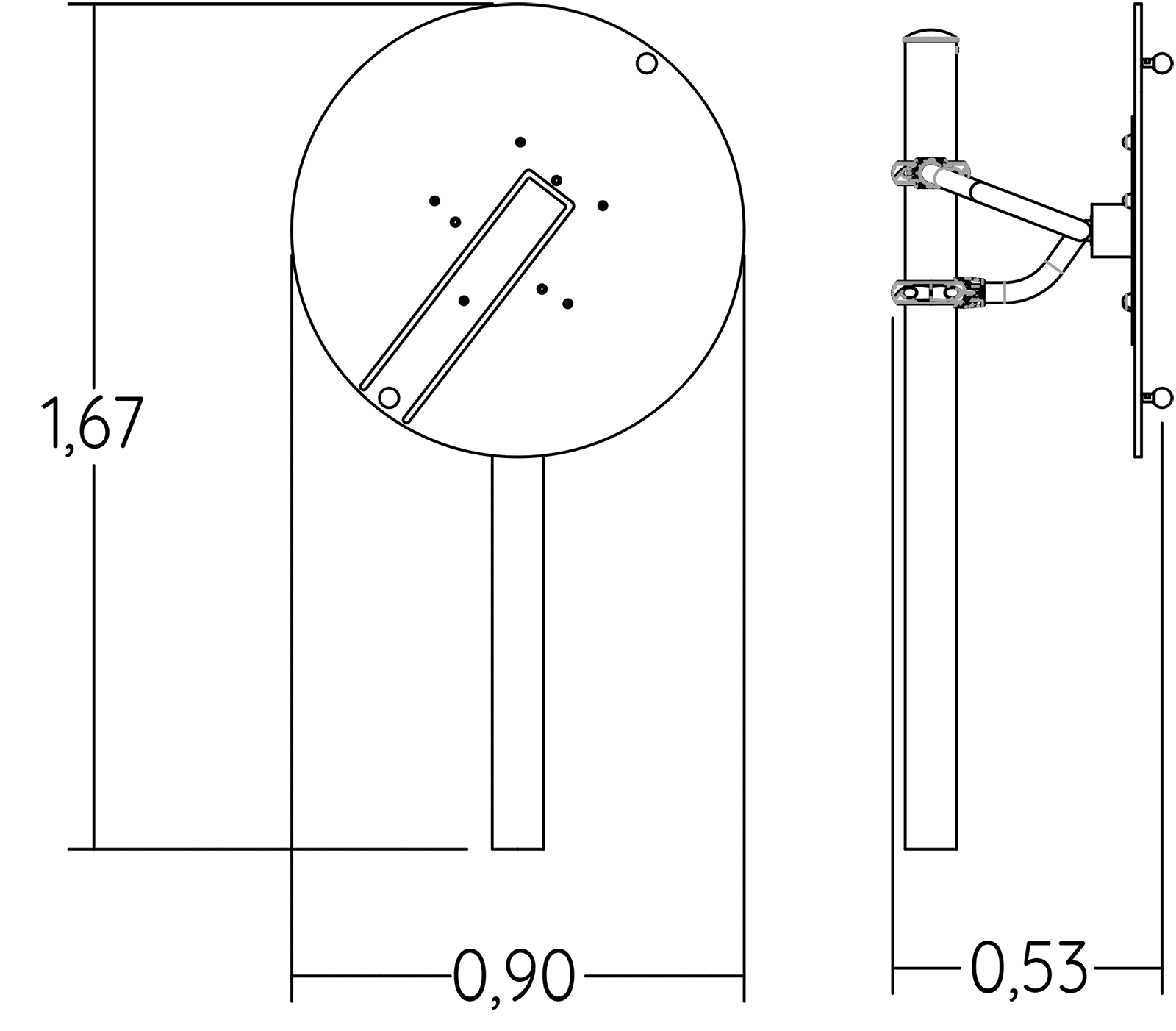Rozmery modulu sú: 0,90 m dĺžka, šírka 0,63 m, výška 1,80 m.