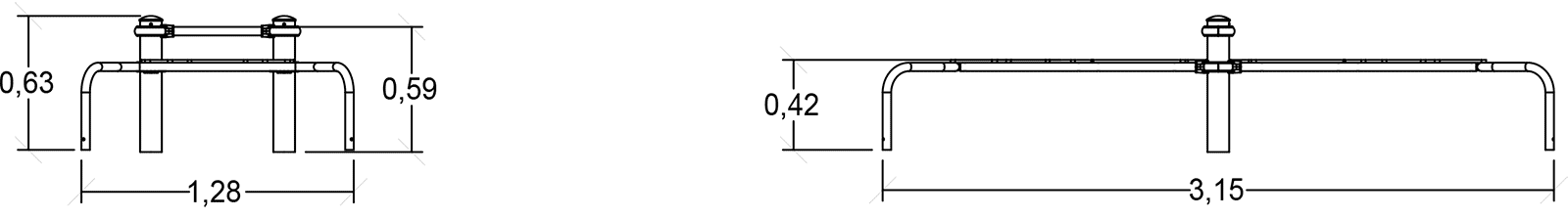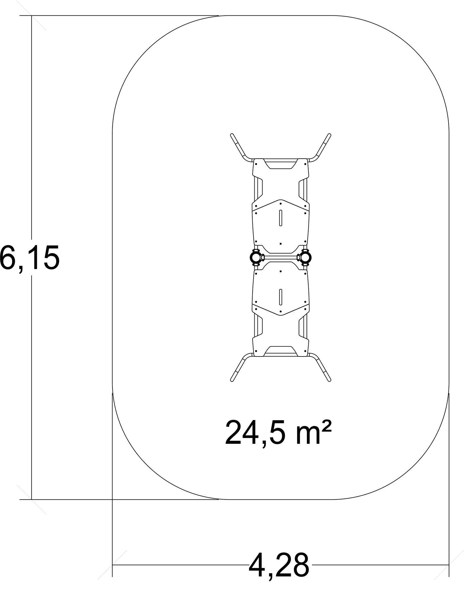 Rozmery modulu sú: 3,15 m dĺžka, šírka 1,28 m, výška 0,64 m. Výška voľného pádu (HCL) je 0,60 metrov.