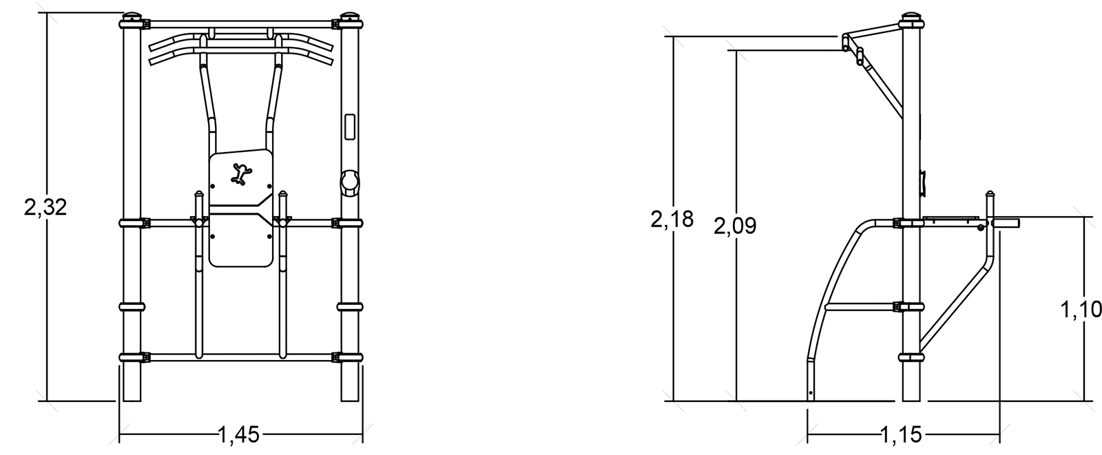Rozmery modulu sú: 1,45 m dĺžka, šírka 1,26 m, výška 2,32 m. Výška voľného pádu (HCL) je 1,27 metrov.