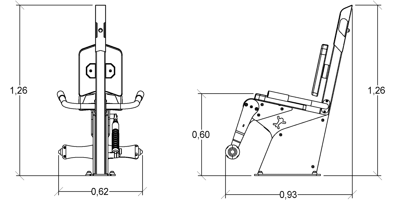 Rozmery modulu sú: 0,93 m dĺžka, šírka 0,62 m, výška 1,26 m. Výška voľného pádu (HCL) je 0,68 metrov.