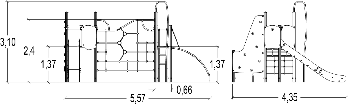 Rozmery modulu sú: 5,57 m dĺžka, šírka 4,35 m, výška 3,10 m. Výška voľného pádu (HCL) je 2,60 metrov.
