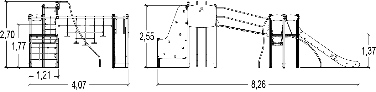 Rozmery modulu sú: 8,26 m dĺžka, šírka 4,07 m, výška 2,70 m. Výška voľného pádu (HCL) je 2,60 metrov.