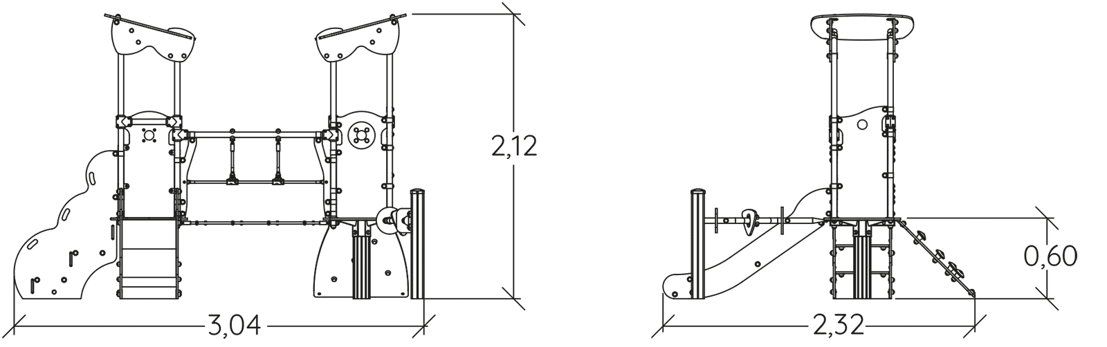 Rozmery modulu sú: 3,02 m dĺžka, šírka 2,32 m, výška 2,12 m. Výška voľného pádu (HCL) je 1,00 metrov.