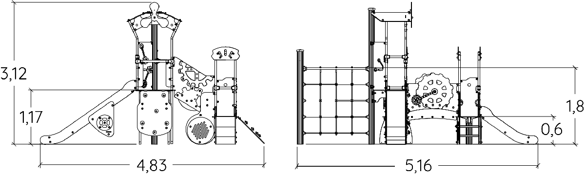 Rozmery modulu sú: 5,16 m dĺžka, šírka 4,83 m, výška 3,12 m. Výška voľného pádu (HCL) je 1,80 metrov.