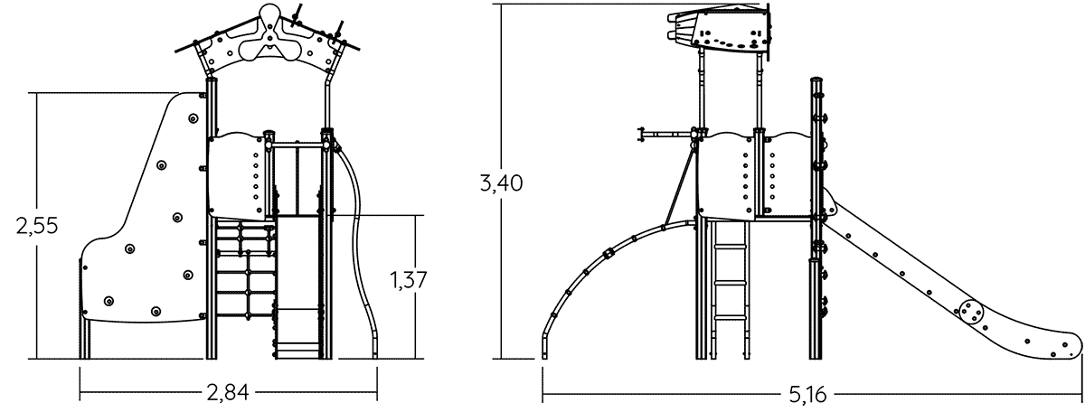 Rozmery modulu sú: 2,84 m dĺžka, šírka 5,16 m, výška 3,38 m. Výška voľného pádu (HCL) je 2,60 metrov.