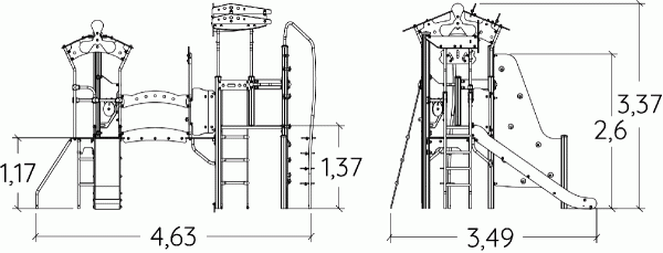 Rozmery modulu sú: 4,63 m dĺžka, šírka 3,49 m, výška 3,37 m. Výška voľného pádu (HCL) je 2,60 metrov.
