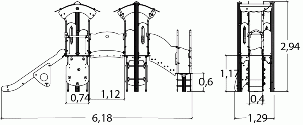 Rozmery modulu sú: 6,18 m dĺžka, šírka 1,29 m, výška 2,94 m. Výška voľného pádu (HCL) je 1,17 metrov.