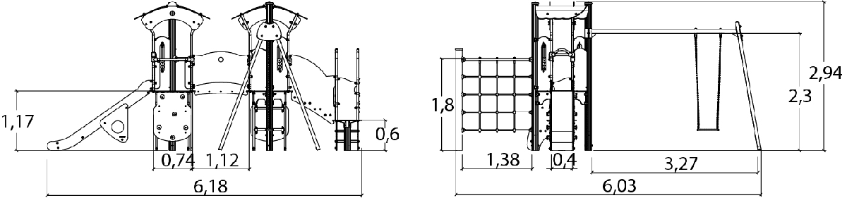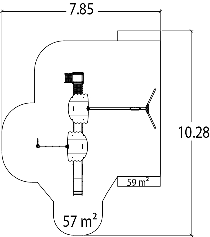 Rozmery modulu sú: 6,18 m dĺžka, šírka 6,03 m, výška 2,94 m. Výška voľného pádu (HCL) je 1,80 metrov.