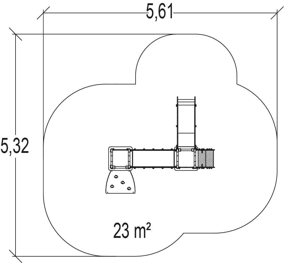 Rozmery modulu sú: 2,61 m dĺžka, šírka 2,32 m, výška 2,00 m. Výška voľného pádu (HCL) je 1,00 metrov.