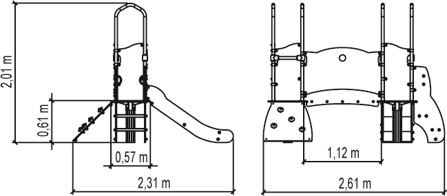 Rozmery modulu sú: 2,61 m dĺžka, šírka 2,32 m, výška 2,00 m. Výška voľného pádu (HCL) je 1,00 metrov.
