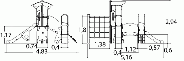 Rozmery modulu sú: 5,16 m dĺžka, šírka 4,83 m, výška 2,94 m. Výška voľného pádu (HCL) je 1,80 metrov.