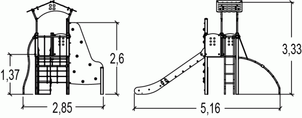 Rozmery modulu sú: 2,85 m dĺžka, šírka 5,16 m, výška 3,33 m. Výška voľného pádu (HCL) je 2,60 metrov.