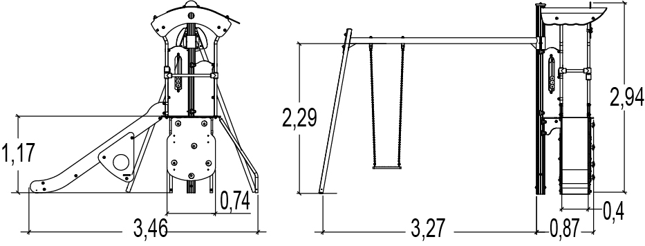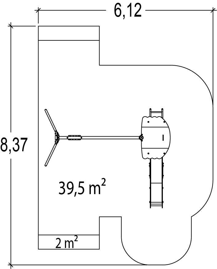Rozmery modulu sú: 4,40 m dĺžka, šírka 3,46 m, výška 2,94 m. Výška voľného pádu (HCL) je 1,40 metrov.