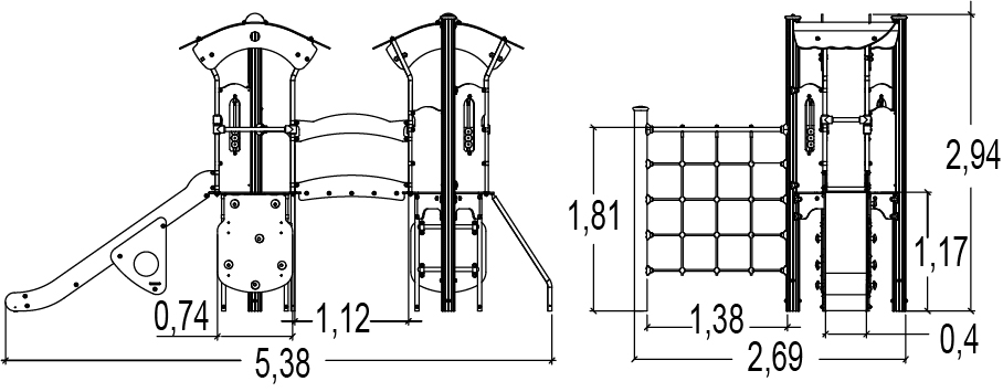 Rozmery modulu sú: 5,38 m dĺžka, šírka 2,69 m, výška 2,94 m. Výška voľného pádu (HCL) je 1,80 metrov.