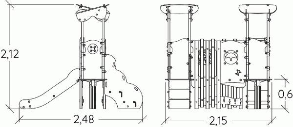 Rozmery modulu sú: 2,48 m dĺžka, šírka 2,15 m, výška 2,12 m. Výška voľného pádu (HCL) je 1,00 metrov.
