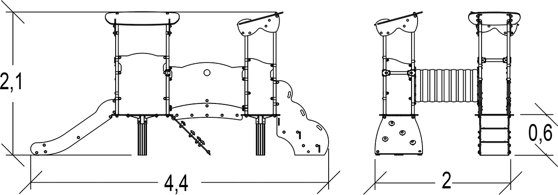 Rozmery modulu sú: 4,39 m dĺžka, šírka 2,18 m, výška 2,12 m. Výška voľného pádu (HCL) je 1,00 metrov.