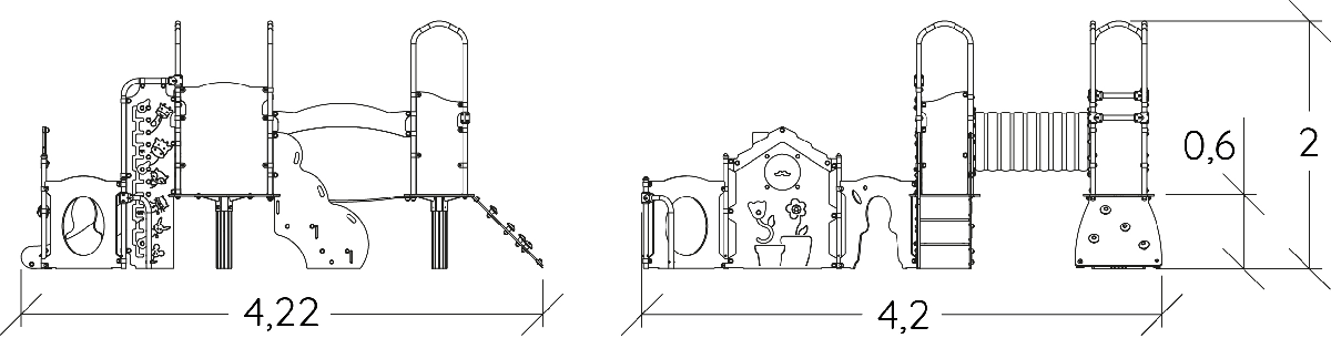 Rozmery modulu sú: 4,22 m dĺžka, šírka 4,21 m, výška 2,00 m. Výška voľného pádu (HCL) je 1,00 metrov.
