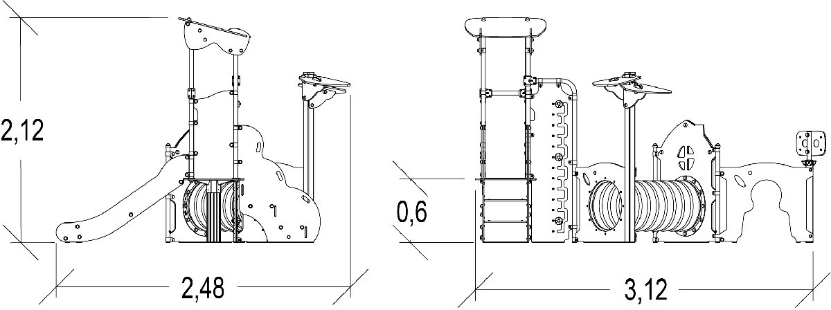 Rozmery modulu sú: 2,77 m dĺžka, šírka 3,39 m, výška 2,12 m. Výška voľného pádu (HCL) je 1,00 metrov.