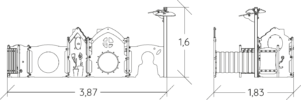 Rozmery modulu sú: 3,87 m dĺžka, šírka 1,84 m, výška 1,60 m. Výška voľného pádu (HCL) je 0,60 metrov.