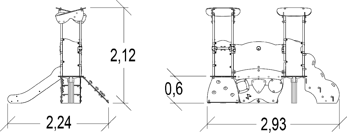 Rozmery modulu sú: 2,93 m dĺžka, šírka 2,24 m, výška 2,12 m. Výška voľného pádu (HCL) je 1,00 metrov.