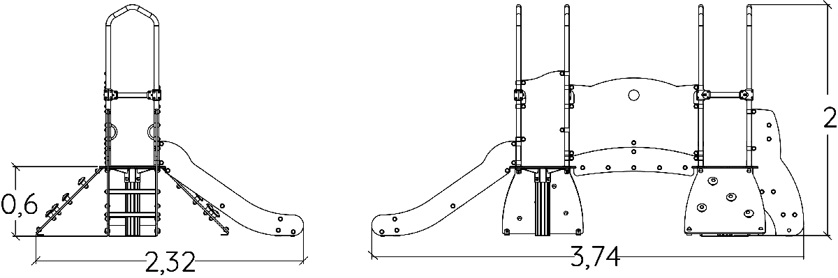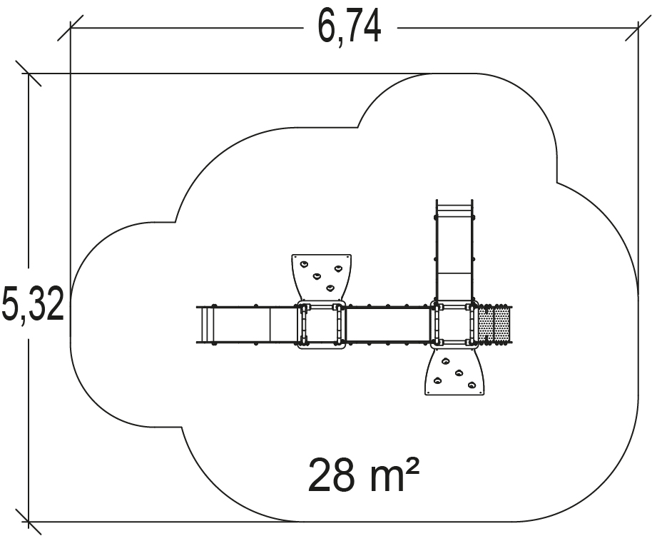 Rozmery modulu sú: 3,74 m dĺžka, šírka 2,32 m, výška 2,00 m. Výška voľného pádu (HCL) je 1,00 metrov.