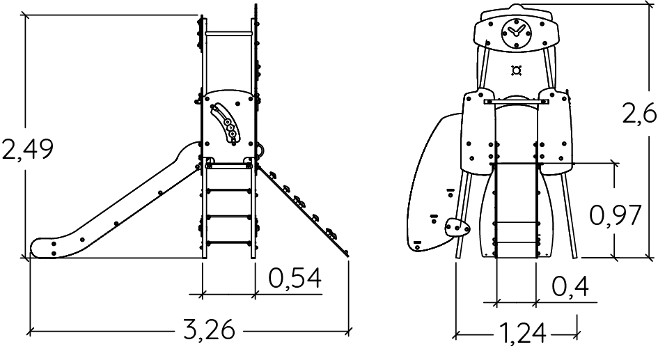 Rozmery modulu sú: 3,26 m dĺžka, šírka 1,72 m, výška 2,60 m. Výška voľného pádu (HCL) je 1,00 metrov.