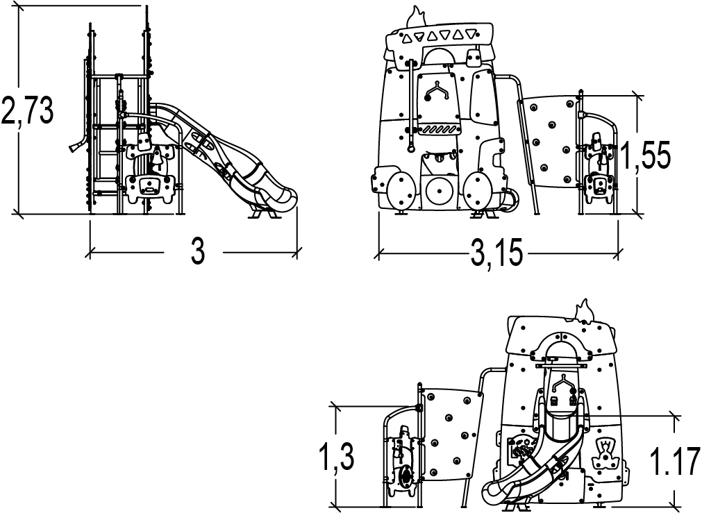 Rozmery modulu sú: 3,15 m dĺžka, šírka 3,00 m, výška 2,73 m. Výška voľného pádu (HCL) je 1,80 metrov.