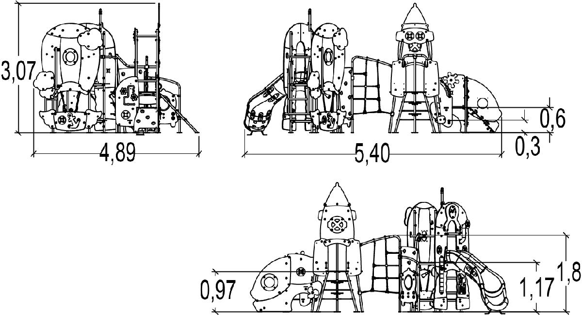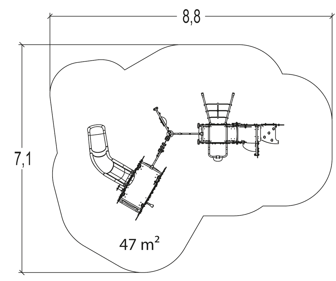 Rozmery modulu sú: 5,40 m dĺžka, šírka 4,89 m, výška 3,07 m. Výška voľného pádu (HCL) je 1,80 metrov.
