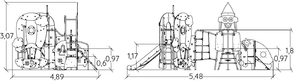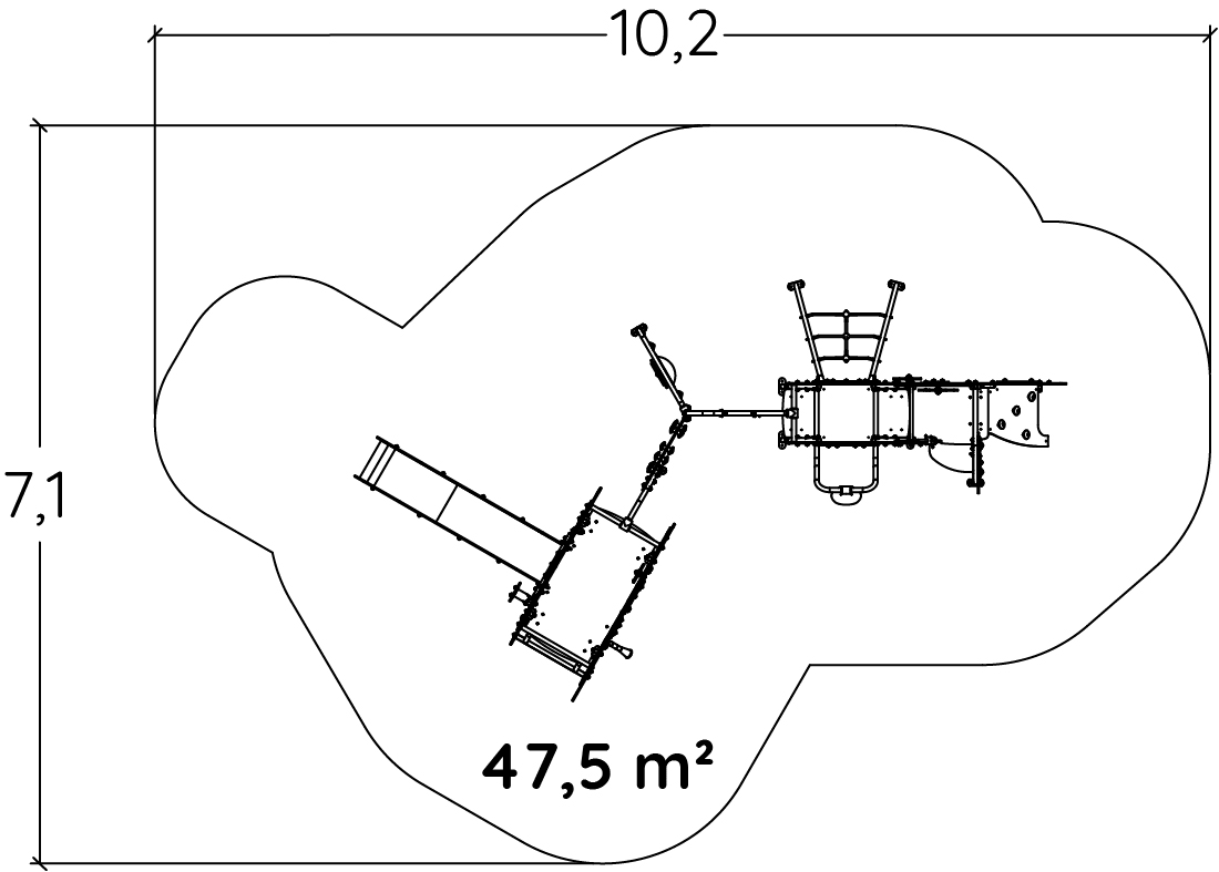 Rozmery modulu sú: 5,48 m dĺžka, šírka 4,89 m, výška 3,07 m. Výška voľného pádu (HCL) je 1,80 metrov.