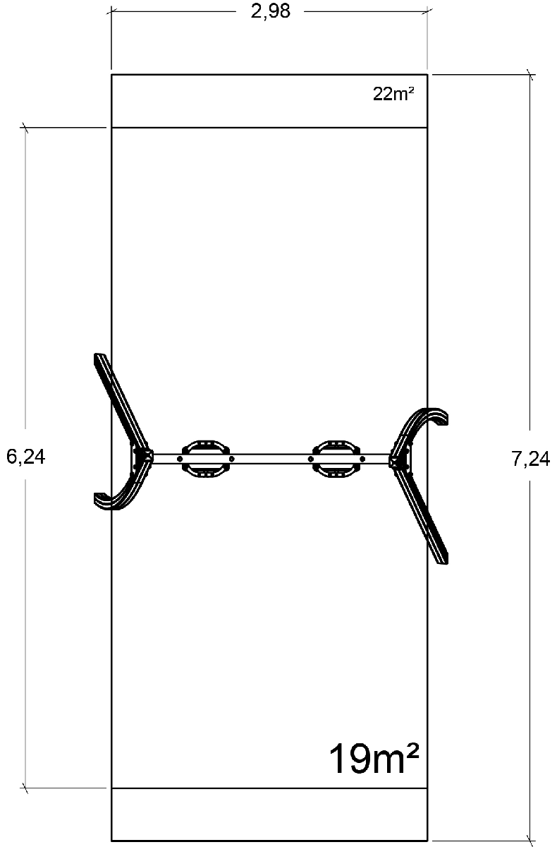 Rozmery modulu sú: 3,34 m dĺžka, šírka 1,98 m, výška 2,60 m. Výška voľného pádu (HCL) je 1,33 metrov.